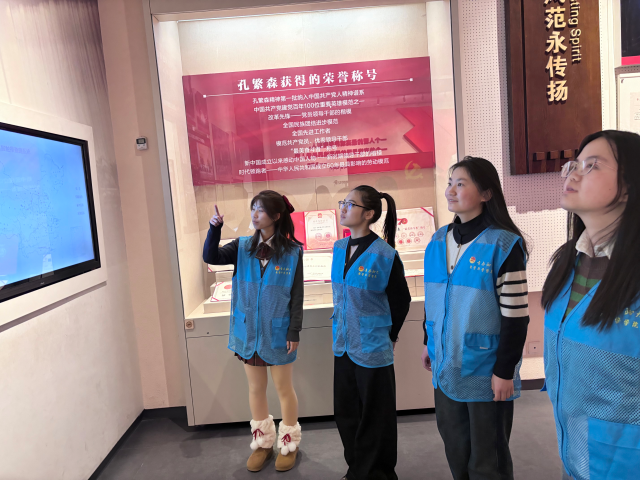怀揣着对孔繁森同志过往的好奇以及对共产党人的崇高敬意,实践队踏入了孔繁森纪念馆。那打了三四处补丁的针织衫、毛糙的薄秋衣、发黄烂洞的旧手套都在无声地诉说着孔繁森雪域生活的艰苦,一本本荣誉证书讲述着孔繁森不凡的过往,证书边角因岁月微微卷起,纸张已泛黄,字迹却依旧清晰有力,记录着他为藏区发展付出的心血。他是18岁参军的齐鲁赤子,是在岗巴雪域挥洒汗水的县委副书记,更是“两次离桑梓,一心向雪域”的优秀共产党人,孔繁森在党史中昂然伫立起了“我将无我,不负国家”的丰碑,是吾辈楷模。