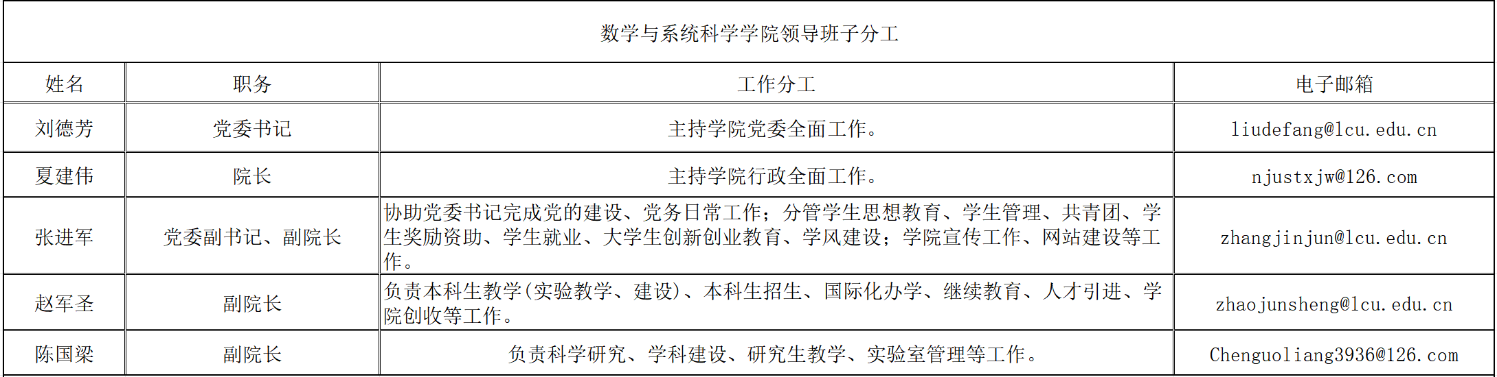 数学与系统科学学院现任领导