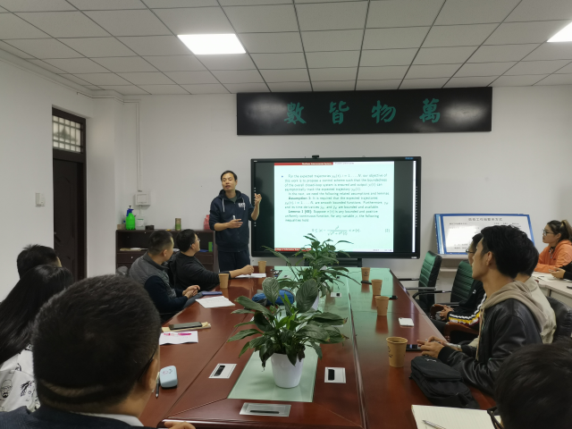 在此次报告中,首先,牛奔教授讲解了大规模系统的研究背景,其次,详细介绍了目前对于大规模系统研究中采用的主要的研究方法--分散控制的原理:通过实现对每个子系统控制器单独设计,达到节约成本,提高各个子系统之间的信息传输的效率。最后,针对目前该领域研究的热点和难点问题--带有未知强互联的大规模系统的自适应控制问题详细讲述了自己的最新进展。报告过程中,牛奔教授对包括神经网络的逼近、动态面控制、界化不等式构造等工具的原理进行了细致入微的解读,还就投稿过程中针对审稿人提出的诸多棘手问题的回复经验跟在场的老师和同学们进行了分享。报告结束后,牛奔教授认真回答了在场师生的提问,还针对研究生培养等问题跟我院老师和同学们进行了深入交流。
