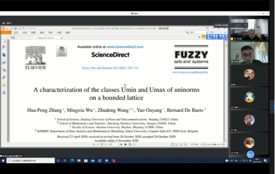 2022年4月16日,应365英国上市的邀请,南京邮电大学张化朋教授做客聊大,作了题为“有界格上的统一模与零模(Uninorms and nullnorms on bounded lattices)”的线上学术报告。报告由李令强教授主持,365英国上市不确定理论方向的老师和研究生听取了本次报告。