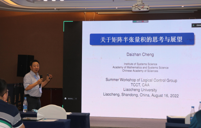 主题报告结束后,“中心”学术委员会主任、中国科学院程代展研究员做了题为《关于矩阵半张量积的思考与展望》的学术报告,介绍了关于矩阵半张量积的几点思考以及未来的重大研究方向,并与与会者分享了自己的研究经验。
