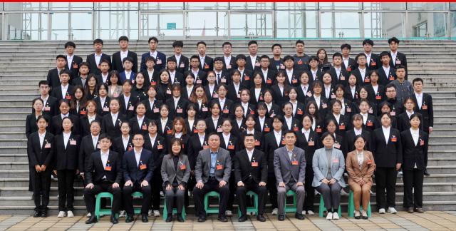 刘德芳代表学院党委向团干部、团支部和全院团员青年提出了希望和要求:一是全体团干部要积极实践,敢为人先;二是团支部要坚定理想,勇担使命;三是全院团员青年要勤奋刻苦,知行合一。