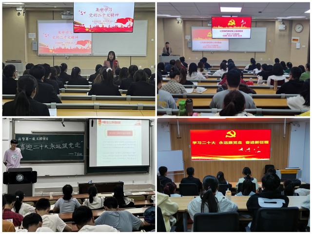 师生党员跟进学。明确在教职工政治理论学习、“三会一课”、“主题党日”、入党积极分子培训、“主题团日”、青年大学习等组织生活中优先学、重点学党的二十大报告,围绕“让党旗在新征程上高高飘扬”“学习党的二十大新党章”等开展系列活动,把党的二十大精神传达到每一个党支部、每一名党员群众,推动党的二十大精神进头脑、进心田。