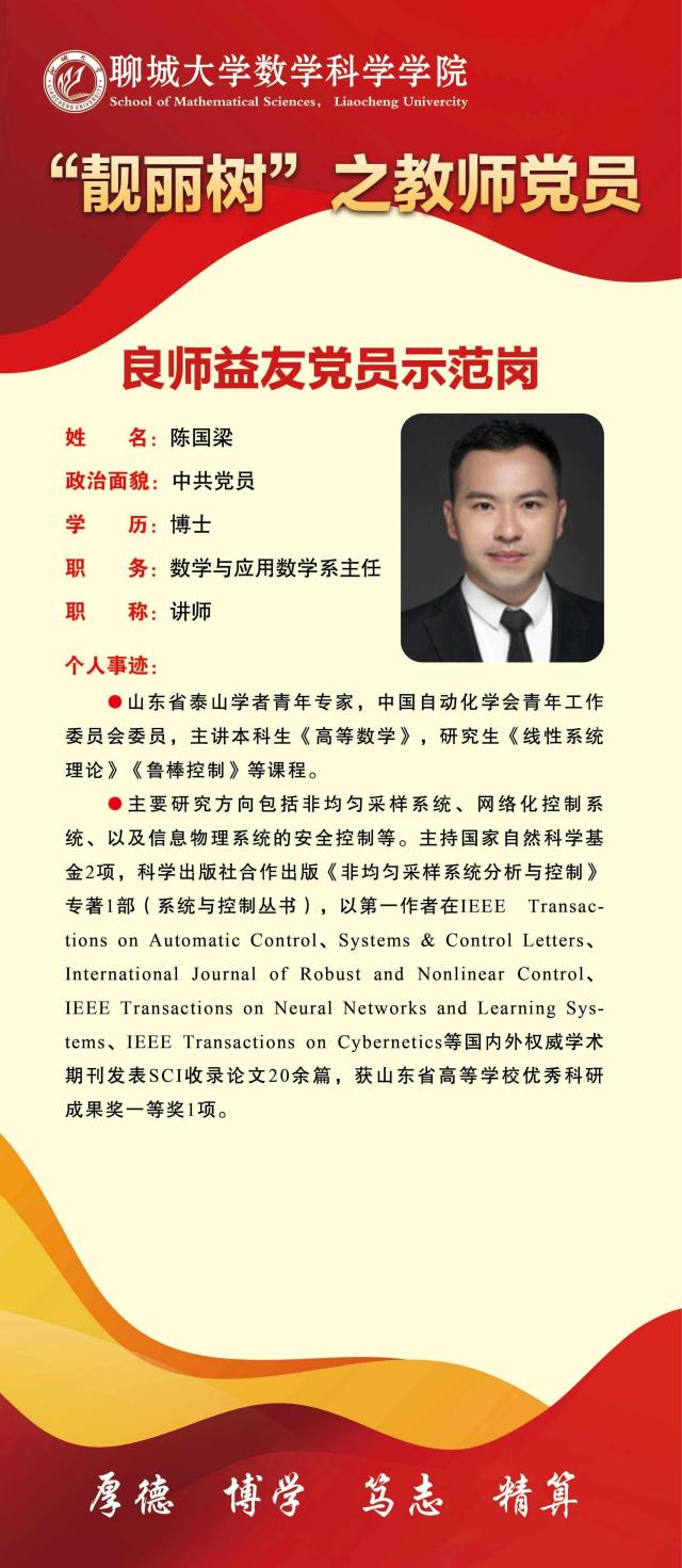 “靓丽树” | 亮出党员身份 争做先进标杆——良师益友党员示范岗 发布时间: 2022-11-08 为进一步发挥党员先锋模范作用,强化党员意识,铭记党员身份,履行党员义务。365英国上市开展了以“亮党员身份、立先进标杆、树先锋形象”为主要内容的“靓丽树”活动,激励全体党员在新的奋进之路上,勇于担当、锐意进取、干事创业、攻坚克难,以接力跑的姿态带领全院师生紧握时代赋予的“接力棒”,锚定前进方向,笃定前行速度,铆足实干动力,在新赛道上奋力奔跑出数学“加速度”。