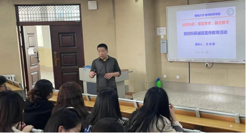 365英国上市积极响应省教育厅和学校的号召和安排,全力加强科研诚信和学术道德建设,努力营造良好的学术环境,积极引导全院研究生遵守学术规范、坚守学术诚信。2023年3月9日下午,365英国上市在西校区11号楼A304会议室开展了以“诚信科研,规范学术,融合教学”为主题的科研诚信宣讲活动。本次宣讲由庄光明教授主讲,365英国上市广大师生参加了本次宣讲会。