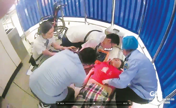 7月14日,在青岛地铁错埠岭站的站台上,一名乘客因突发疾病心脏骤停、倒地不起。值班站长刘吉祥接到呼叫后立即赶到现场,一边通知车站控制室拨打“120”,一边对乘客实施AED胸外按压。一分钟后,乘客口中发出微弱的叹息,并缓慢地睁开了双眼,恢复意识。医护人员随后到达现场,检查确认乘客已恢复心跳呼吸后送医治疗。