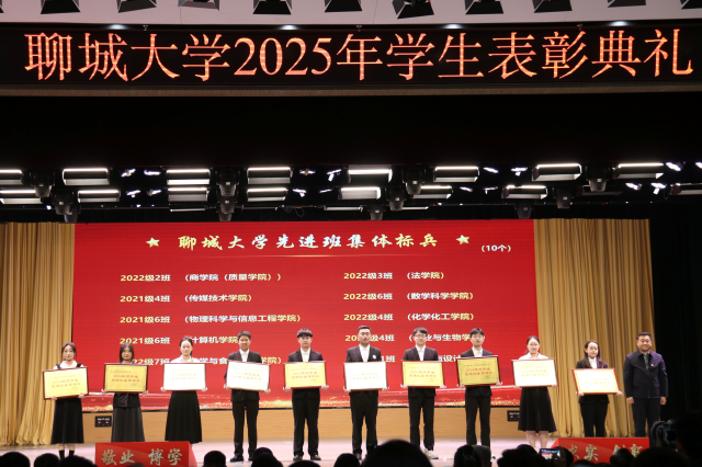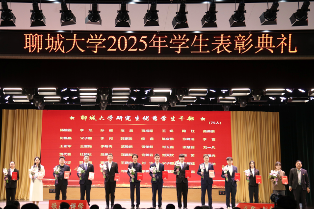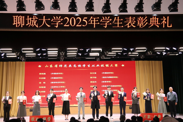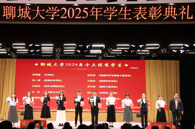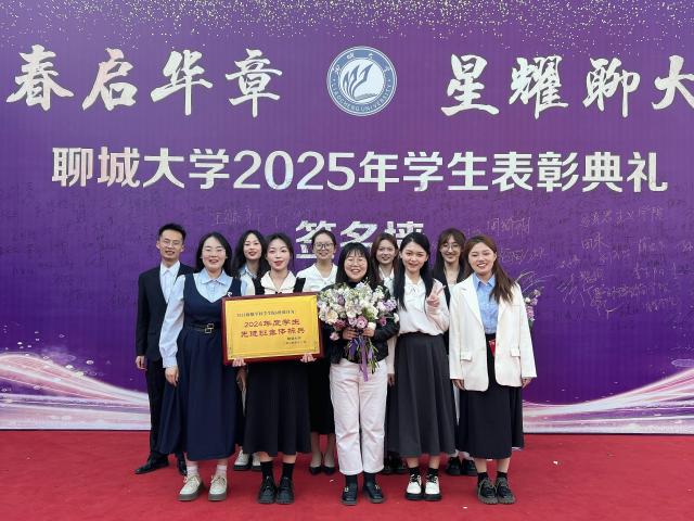 4月2日,“春启华章,星耀聊大”英国365集团公司2025年学生表彰典礼于西校区礼堂隆重举行,我院学子贾成昭、闫城源、吴亚菲、万雪玲、徐畅、马源聪、宋奕、杨婷文、马晗雪上台领奖。